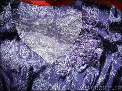 Орнамент на шелке (оформление горловины платья). материал: шелк, бисер, иск. жемчуг, пайетки, бусины Swarovski.