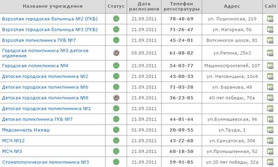 Для того чтобы записаться к врачу необходимо выполнить несколько простых действий, понятных даже неквалифицированному пользователю. На широко известном геоинформационном портале г. Ижевска IGIS.RU в разделе «Запись к врачу» выбирается лечебное учреждение а в расписании работы выбирается врач и желаемое время записи. Для идентификации вводится фамилия больного и номер страхового медицинского полиса. При успешной записи необходимо подойти в регистратуру с паспортом и страховым полисом за 10 минут до назначенного времени приема. Все время записи занимает не более 1-2 минут. На портале IGIS.RU можно посмотреть расписание работы врачей, детальную информацию о медицинском учреждении, график работы, к какой больнице относится ваш дом, схему проезда на карте города и даже наличие пробок и наличие автобусов для проезда на необходимом маршруте. При отсутствии интернета дома имеется возможность записаться на прием к врачу в ближайшем почтовом отделении. Практика других регионов показала, что очереди в регистратурах при внедрении системы существенно сокращаются, на 35% возрастает посещение врачей людьми трудоспособного возраста благодаря тому, что они теперь могут планировать время посещения врача. Разработчики системы надеются, что с внедрением системы медицинская помощь в республике станет более доступной. Источники: http://prodoctorov.ru/izhevsk/lpu/19953-poliklinika/, http://pobeda2.ru/home/item/1198-zapis-k-vrachu-%E2%80%93cherez-internet.html, http://www.med-18.ru/faq/85/18677/ | |