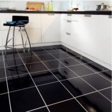 В помещениях, где отмечается повышенная влажность и высокая проходимость, керамическая плитка для пола будет лучшим выбором. К таким помещениям, в первую очередь, относятся ванная комната, кухня и коридор. На рынке керамическая плитка представлена в огромном многообразии цветов, фактур, рисунков и размеров. Популярность плитки обуславливается еще и тем, что она не боится перепадов температур, воздействия моющих средств. Но даже и у такого материала есть свои недостатки: керамика жесткая, хрупкая и холодная. Часто ее применяют в системе «теплый пол», однако в спальне и в детской такое напольное покрытие вряд ли можно встертить. Пол из керамики боится падений тяжелых предметов и может треснуть. Ламинат