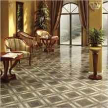 Впервые паркетный пол появился во дворцах французских королей в 17 веке, и стал символом особого статуса владельцев апартаментов. Технология производства паркета изменилась, изменялся и внешний вид покрытия. Сегодня паркет представлен в трех вариантах: паркетная доска, массивная доска и штучные элементы. Основные преимущества такого вида покрытия – это экологичность и долговечность. Рабочий слой паркета составляет несколько миллиметров, потому циклевать его можно множество раз, обновляя поверхность. В зависимости от оттенка паркета, размера отдельных элементов и способа укладки можно обыгрывать различные напольные композиции, соответствующие стилю помещения. К недостаткам данного вида покрытия можно отнести его высокую стоимость, прихотливость к влаге. Паркет нельзя использовать в системе «теплый пол». Керамическая плитка